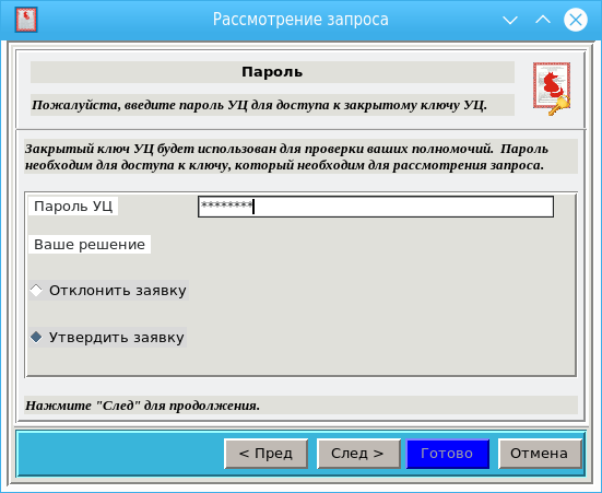 Удостоверяющий центр имеет графический интерфейс, разработанный на Tcl/Tk.