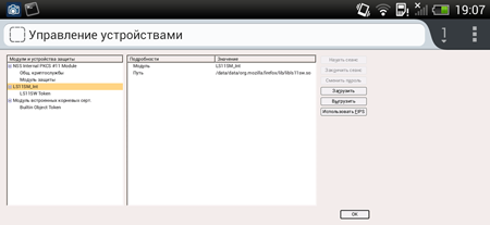 Для просмотра списка подключенных устройств защиты необходимо ввести в адресной строке chrome://pippki/content/device_manager.xul